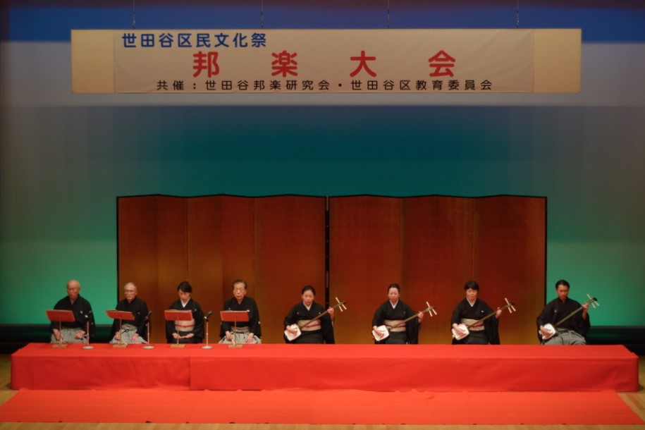 「世田谷邦楽研究会 会長・杵屋 徳衛(きねや とくえ) 平成7年(1995年)下北沢を拠点に「長唄研究会」として発足 その後世田谷区内で活動する長唄や囃子の家元に呼びかけ、 平成24年(2012年)新たに「世田谷邦楽研究会」として再発足。 その年から、世田谷区の文化祭に参加。 長唄演奏だけにとどまらず、常磐津・清元・小唄・箏曲・新内など 邦楽全般にわたりその魅力などを、実演を交えた解説やワークショップ なども含め、紹介・普及活動にも力を注いでいる。」